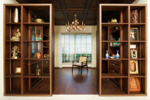 Material expression defines the residence’s identity. Marble floors add brightness and refinement, while wood finishes bring warmth and grounding. Likewise, thoughtfully articulated ceilings — with mouldings, curves, and concealed lighting — lend each room a sculptural quality.