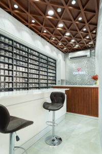 Ceetees Silver Gallery designers created it to be simple and smart, like the silver it sells. The shop looks neat and modern from the outside. It has clean lines and soft colors that stand out against the background. Inside, silver lls the walls, arranged in clear boxes with precision. This setup makes it easy to see everything at a glance. The wooden ceiling and back wall add warmth, while shiny tiles remind you of silver’s sparkle. This design makes shopping quick and easy. It helps customers nd what they need. It is a store built for order, comfort, and trust, without extra decoration.