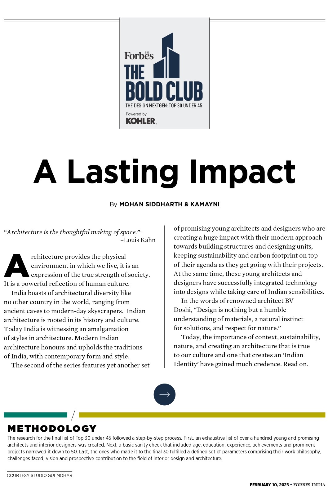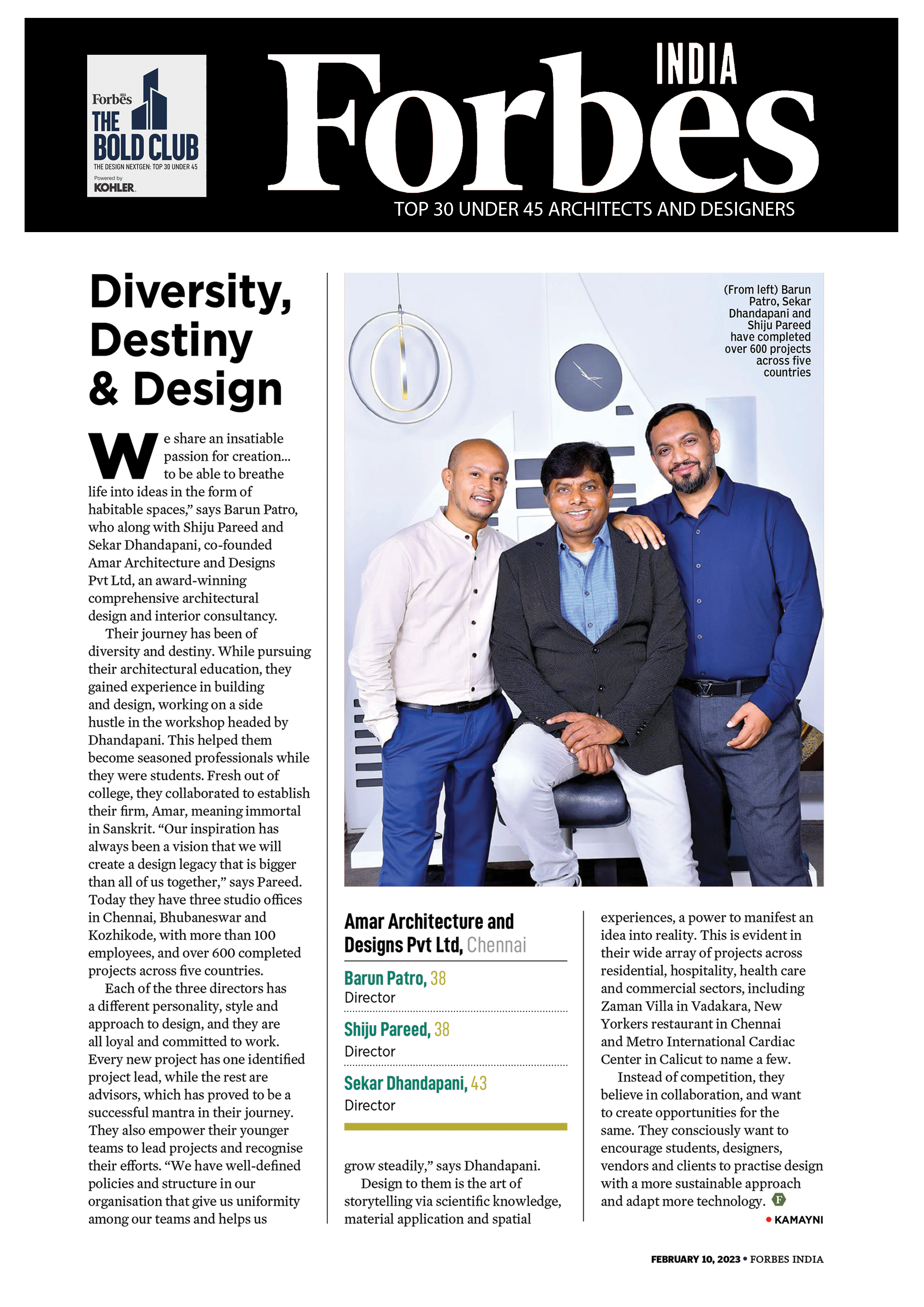 What better news could there be than our company being included in Forbes India’s Top 30 Architects and Designers list.