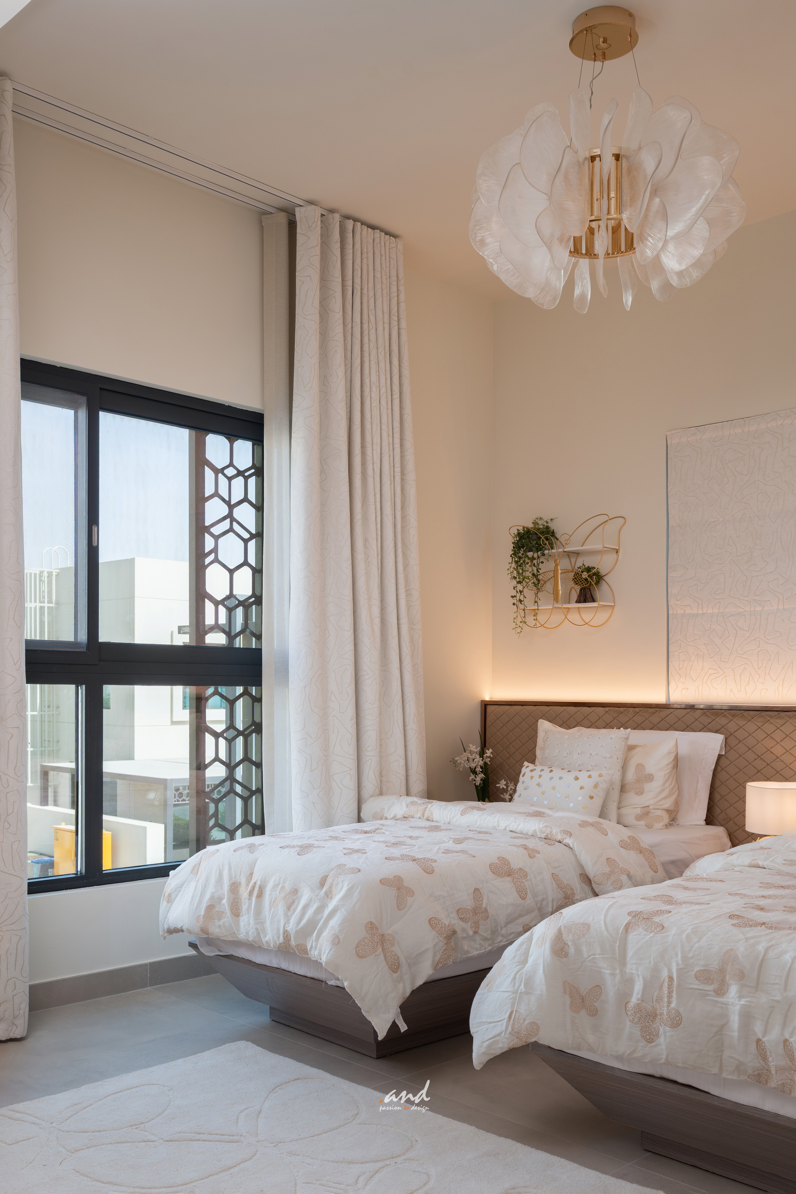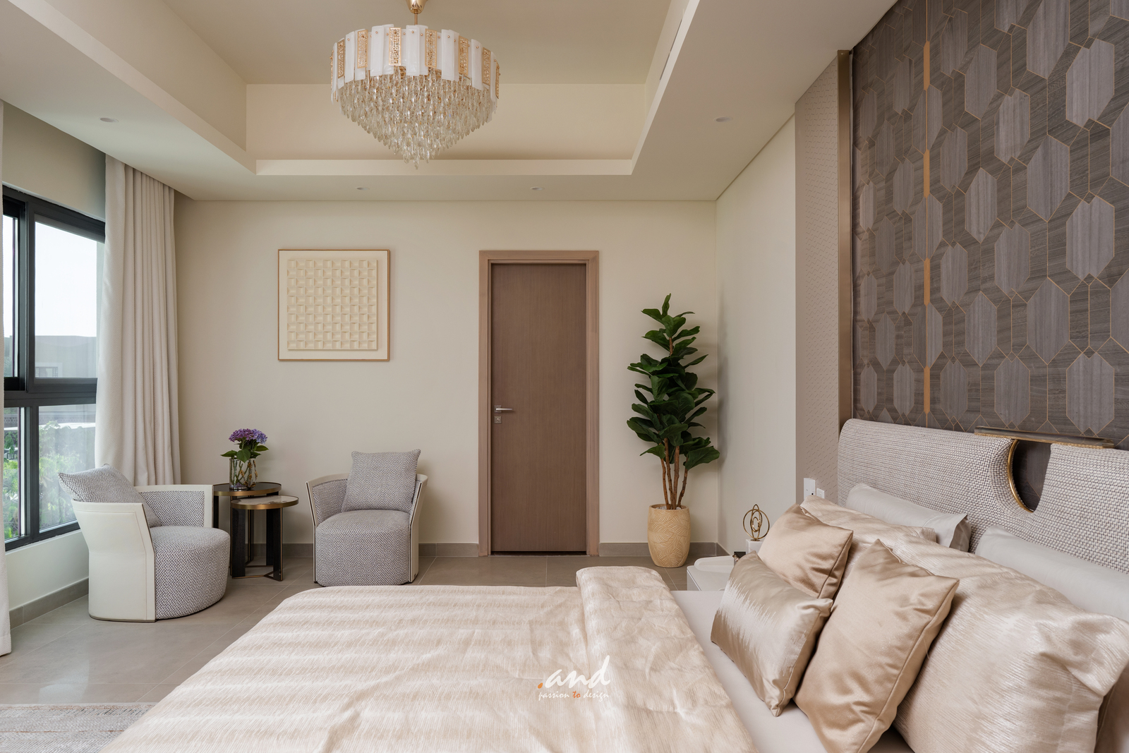 The interiors of Muneer Sharjah residence embody contemporary Luxury with a calm, refined character. The design uses a neutral foundation of creams, taupes, and soft greys to create a serene and timeless atmosphere. These tones set a steady base, while metallic accents and rich textures add controlled opulence and visual depth.